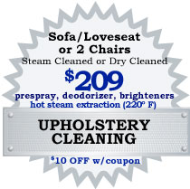For Upholstery Cleaning we recommend regular cleaning of all your upholstered furniture. The time between cleanings will vary depending upon your life-style. Children and pets tend to contribute to the accumulation of dirt and grime much faster. Also color and fabric type are an important consideration when considering having your furnishings cleaned. No matter what type of furniture or upholstery fabric that you have in your home, our technicians are trained to clean them properly and safely. You will never have to worry that your furniture will be ruined.